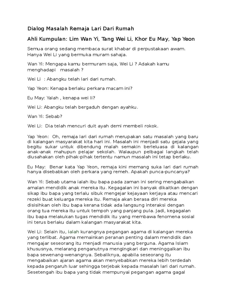 Dialog Masalah Remaja Lari Dari Rumah Pdf